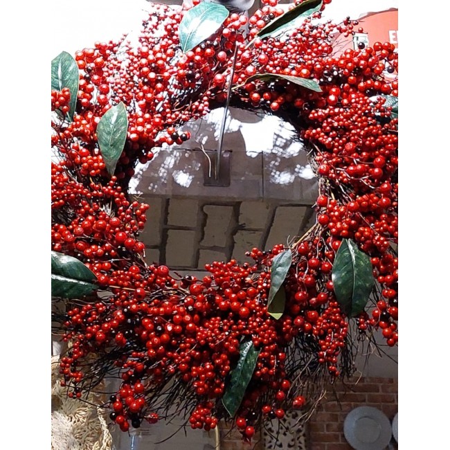 اكليل مصنوع من التوت الصناعي بتصميم شتوي