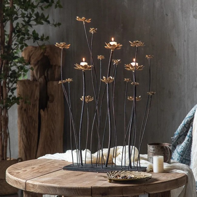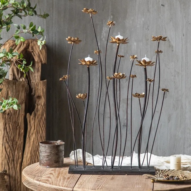 شمعدان معدن مشغول يدويا بتصميم الورود