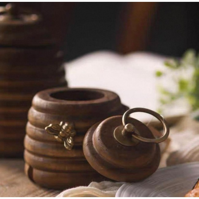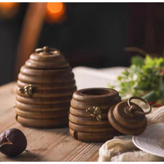 - الموديل: طقم برطمان خشب بتصميم خلية النحل