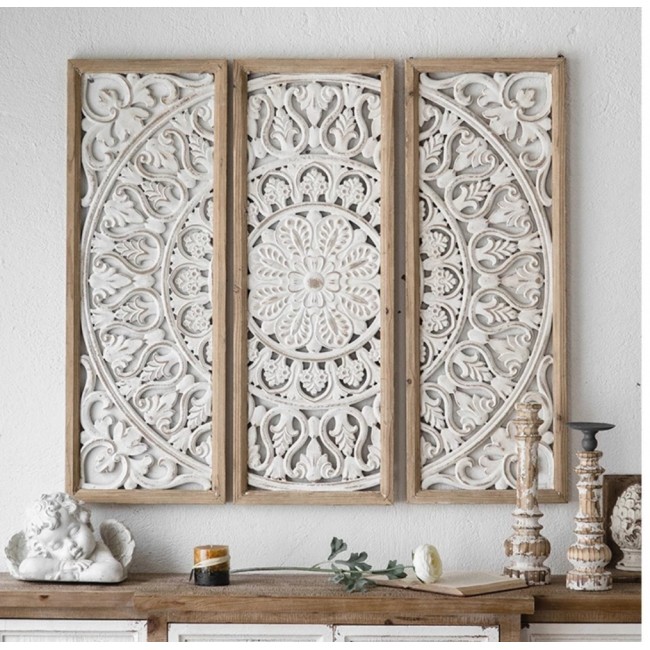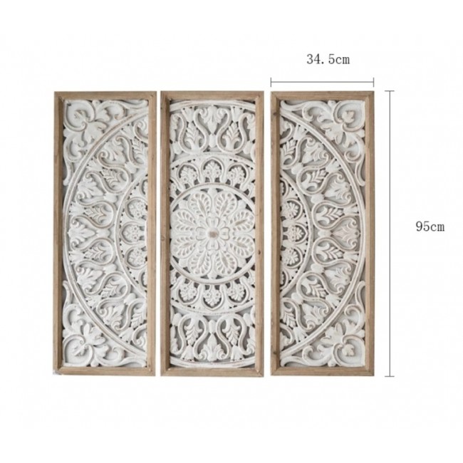 مجموعة لوحات خشب مكونه من ثلاث قطع حفر يدوي